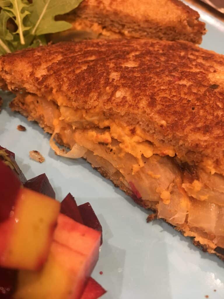 Winter Veggie Paninis with Roasted Red Pepper Spread